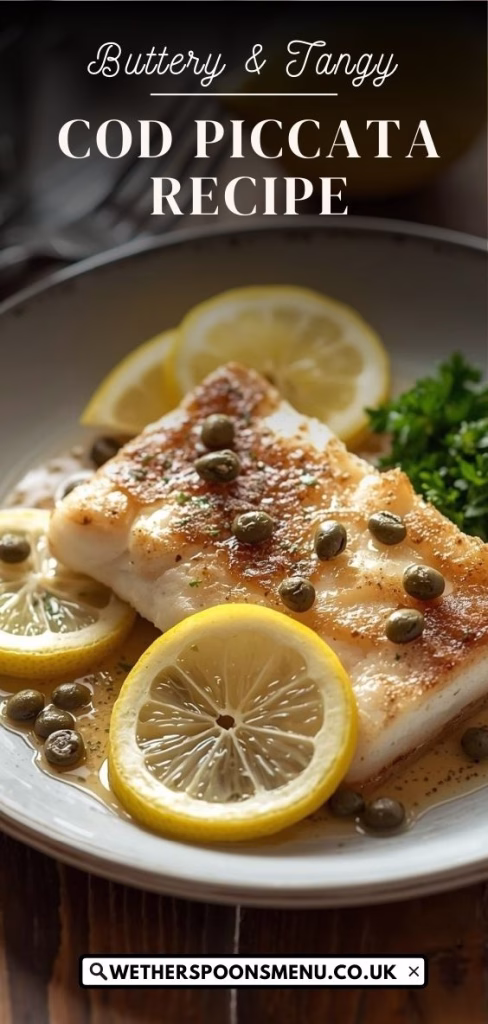 Cod Piccata shines when plated beautifully. I serve the fish on warm plates so it stays hot, then drizzle the zesty sauce right over the top. Garnish with extra lemon slices and a sprinkle of fresh parsley for color. For sides, creamy mashed potatoes, angel hair pasta, or sautéed green beans are perfect to soak up the sauce. A crisp white wine also pairs beautifully!