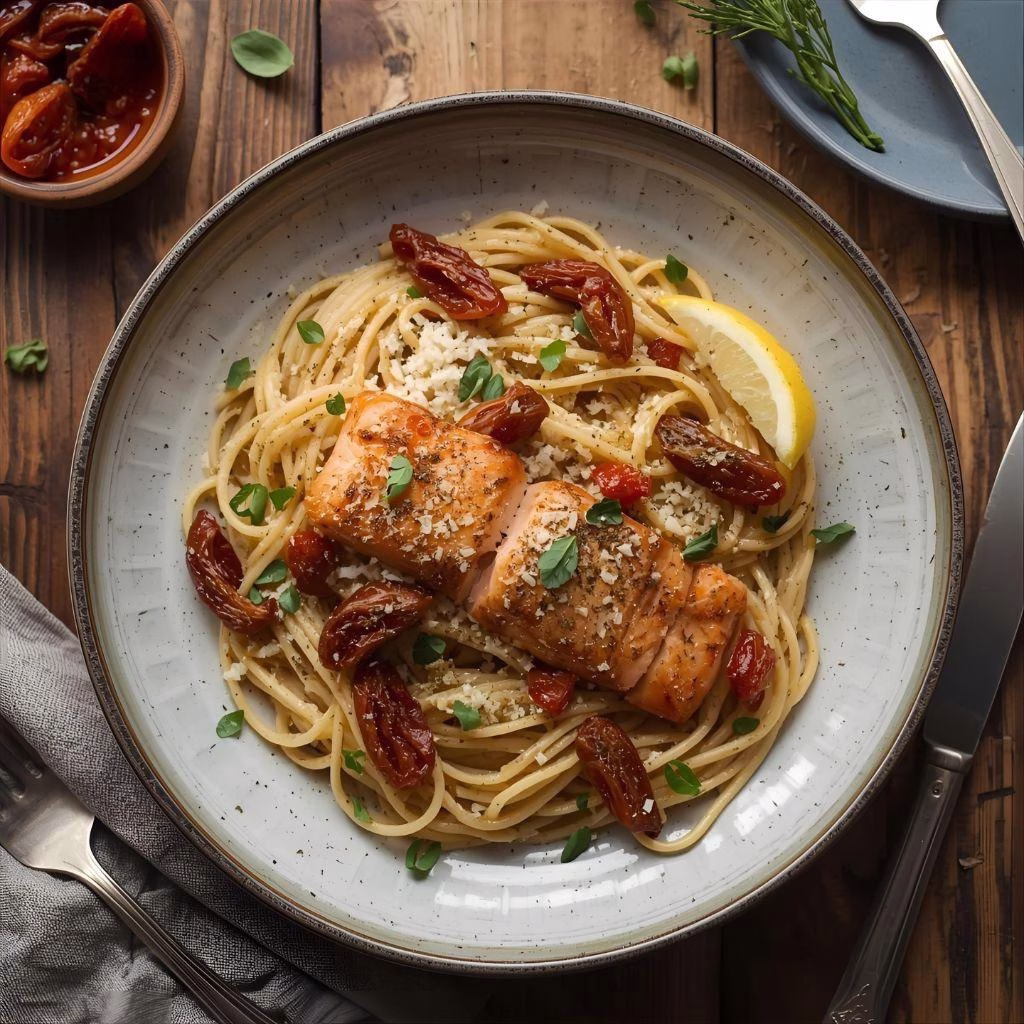 How to Serve Salmon Pasta with Sun-Dried Tomatoes Recipe